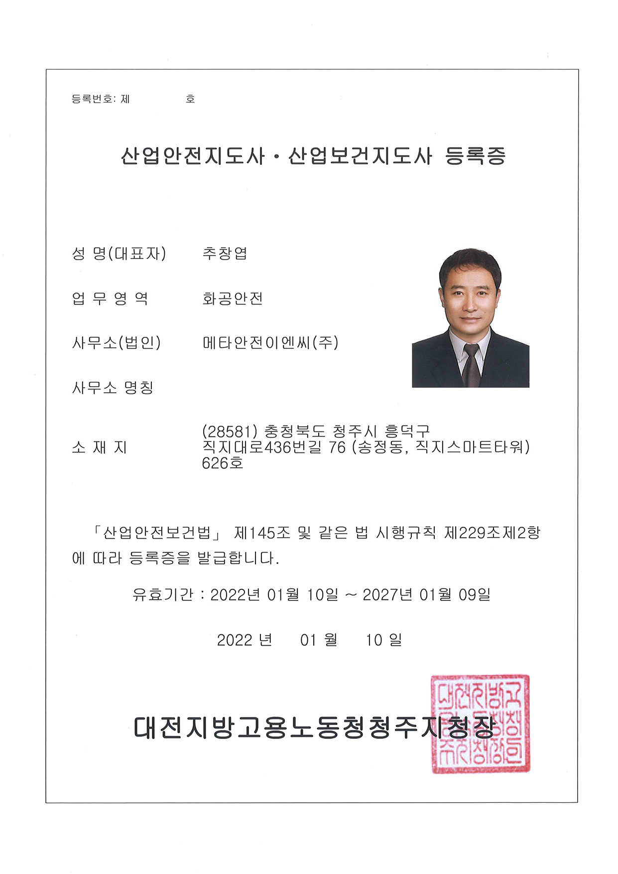 산업안전지도사 · 산업보건지도사 등록증